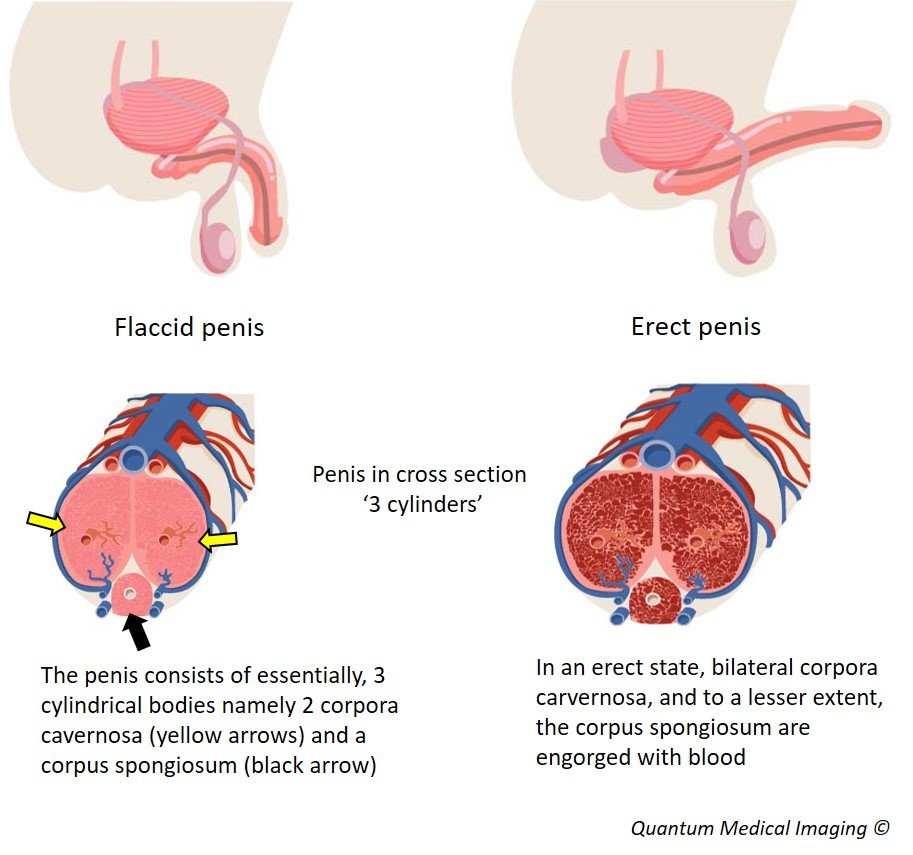 The penis may be imaged in both flaccid and erect states. Imaging an erect penis improves visualisation of penile anatomy.